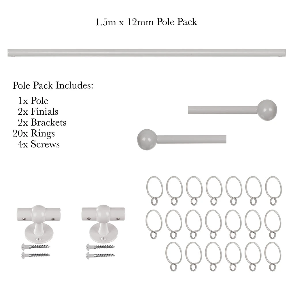 Each pack contains all you need to dress one window and comes complete with curtain pole, finials, rings and brackets: