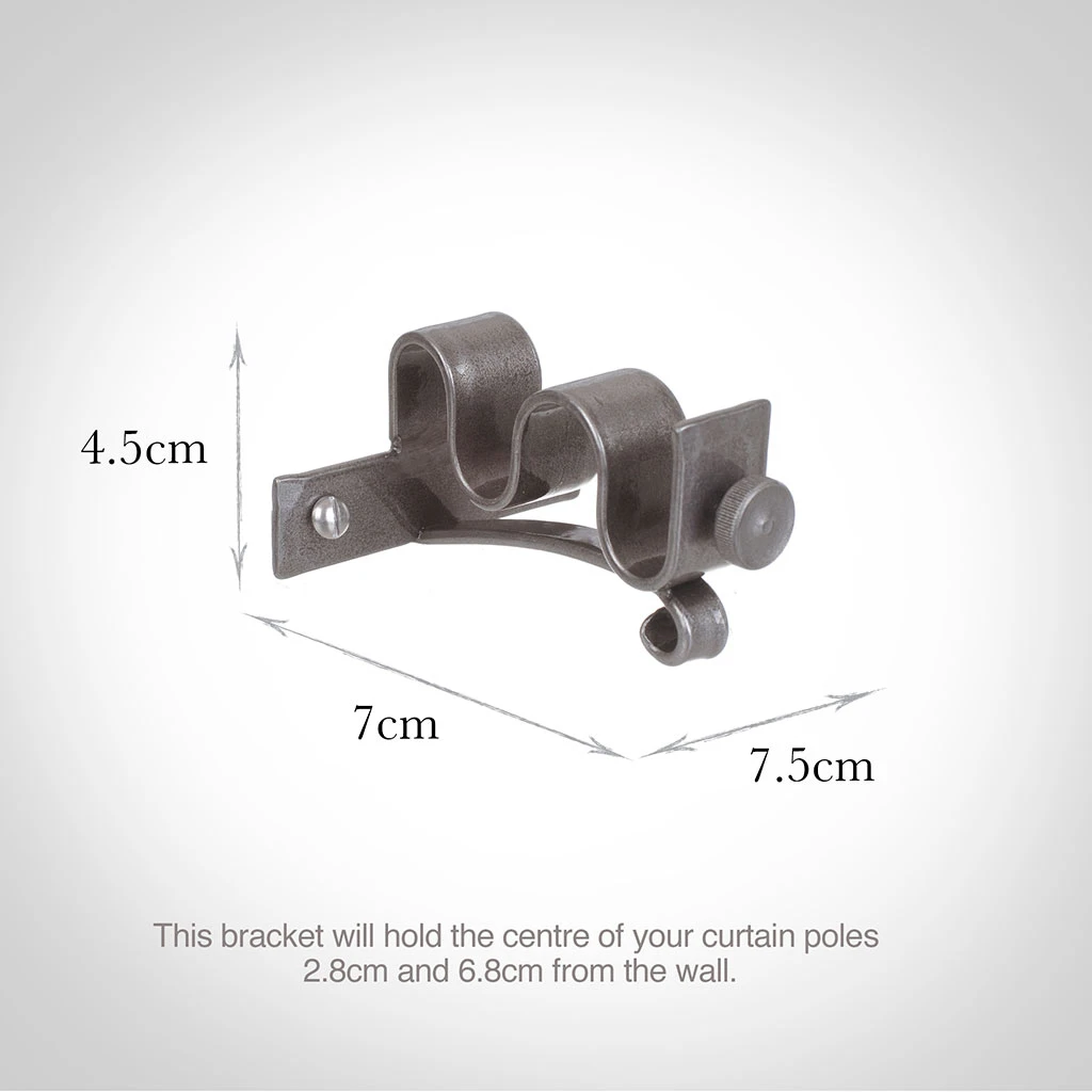 - Double brackets are generally used at either end of your pole. With a reach (depth) of 7.5cm to the front of the pole, they will fit most window settings.