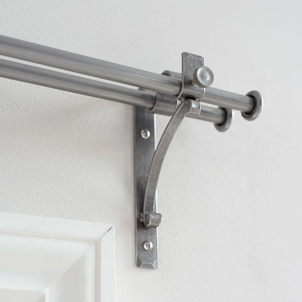 - Double brackets are generally used at either end of your pole. With a reach (depth) of 7.5cm to the front of the pole, they will fit most window settings.