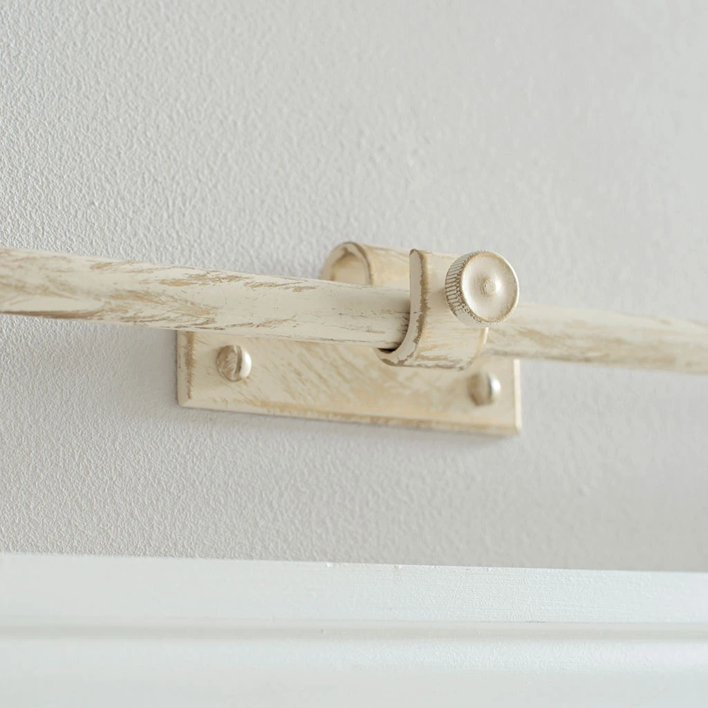 Our 12mm Chapel Centre Brackets are the perfect companion for your forged iron curtain poles ensuring they will look fabulous for years to come in whichever room they are fitted. Finished in Old Ivory for a shabby chic French-style finish, these brackets are made from premium quality steel and are suitable for all curtains. We also make a wide range of complementary finials, rings and curtain holdbacks for you to choose from. The brackets have a decorative thumbscrew at the front to help secure your pole, and chamfered edges for an elegant finish.