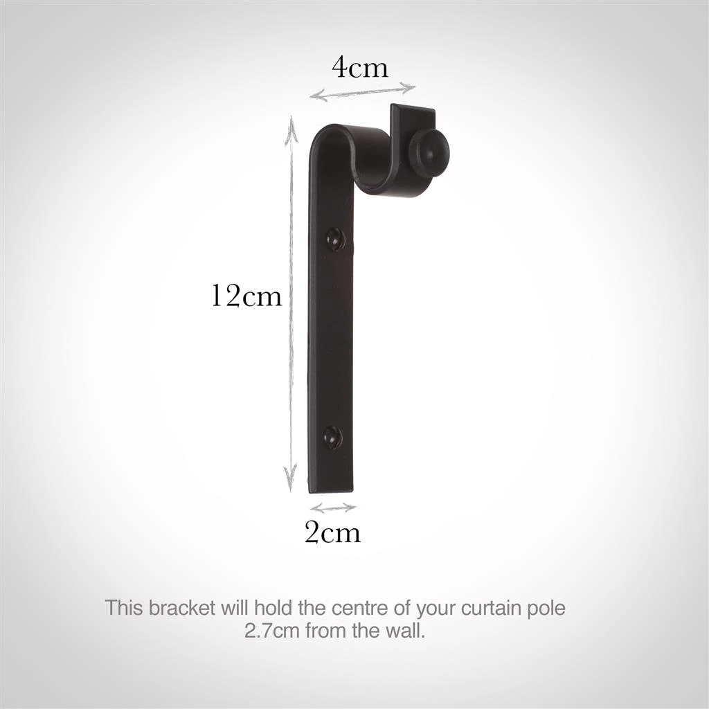 - Standard brackets are generally used at either end of your pole. With a reach (depth) of 4cm to the front of the pole, they will fit most window settings.