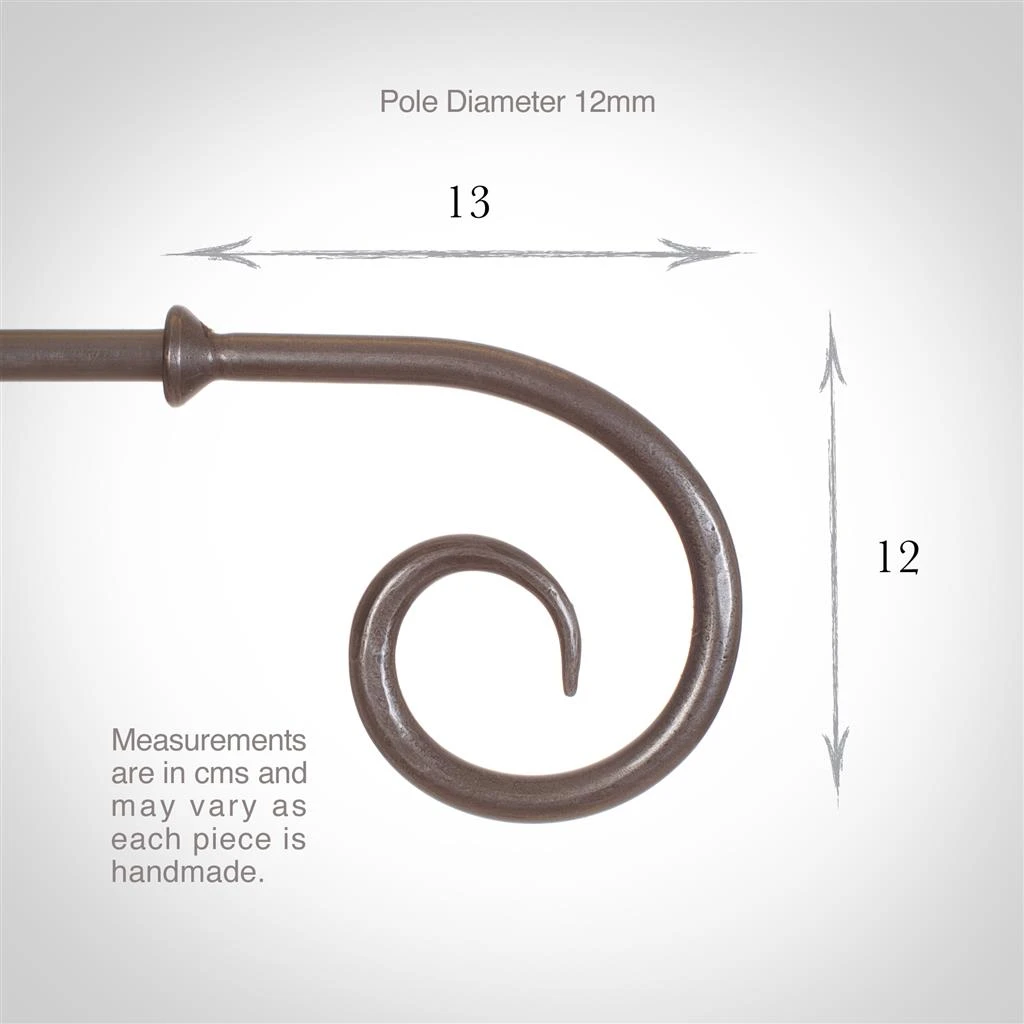 Our popular, forged iron Crook finials are the perfect companion for your Jim Lawrence curtain poles. Shown above in our polished finish, they bring an industrial touch the to your interior and give a classic finish to your window dressing. The finials are designed to slide into the ends of a 12mm pole and are made from high quality steel that is painted in our polished finish for a gunmetal appearance that will look at home in a modern setting.