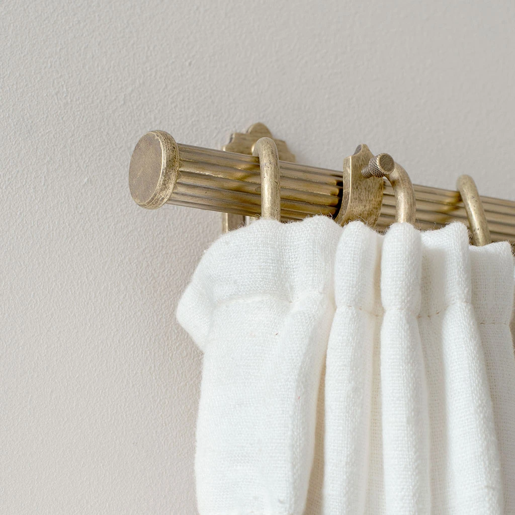 Handmade at Jim Lawrence from natural brass which has been lightly antiqued for a subtle, aged look, these finials from part of our stunning collection of brass curtain pole accessories, including centre and recessed brackets, rings and a wide range of lovely finials to personalise your look. Once fitted inside the pole, the finials can be fixed in place with a tiny grub screw that is located at each end at the back of the pole.