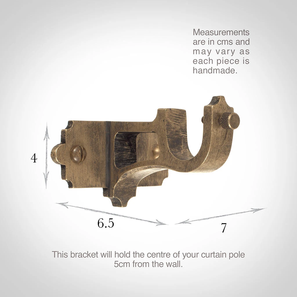Handmade at Jim Lawrence from natural brass which has been lightly antiqued for a subtle, aged look, these brackets from part of our stunning collection of brass curtain pole accessories, including centre and recessed brackets, rings and a wide range of lovely finials to personalise your look. All our products are made using traditional metal working techniques and are hand finished to the very highest standards here at our Suffolk workshop. We are very proud of the details of the design which highlight the skill of our metal workers and their ability to make products that suit both contemporary and period properties.