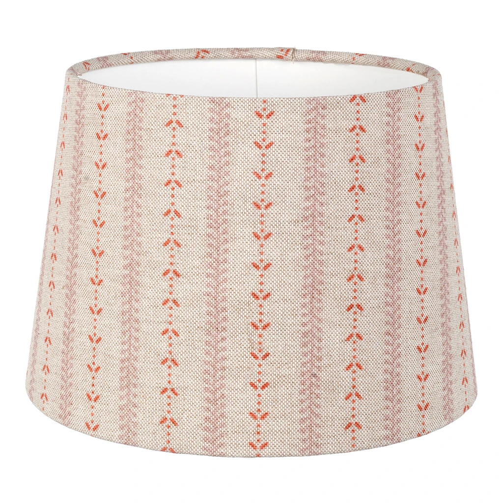 Shown above in our lovely new Cottage Stripe in Coral fabric inspired by the colours of British cottage gardens during the spring and summer months, this shade features delicate, diagonal stripes of dusky pink and coral on a neutral background. It makes a charming lampshade that can be effortlessly combined with our other fabrics for a complete country modern look in an understated kitchen, diner or bedroom.