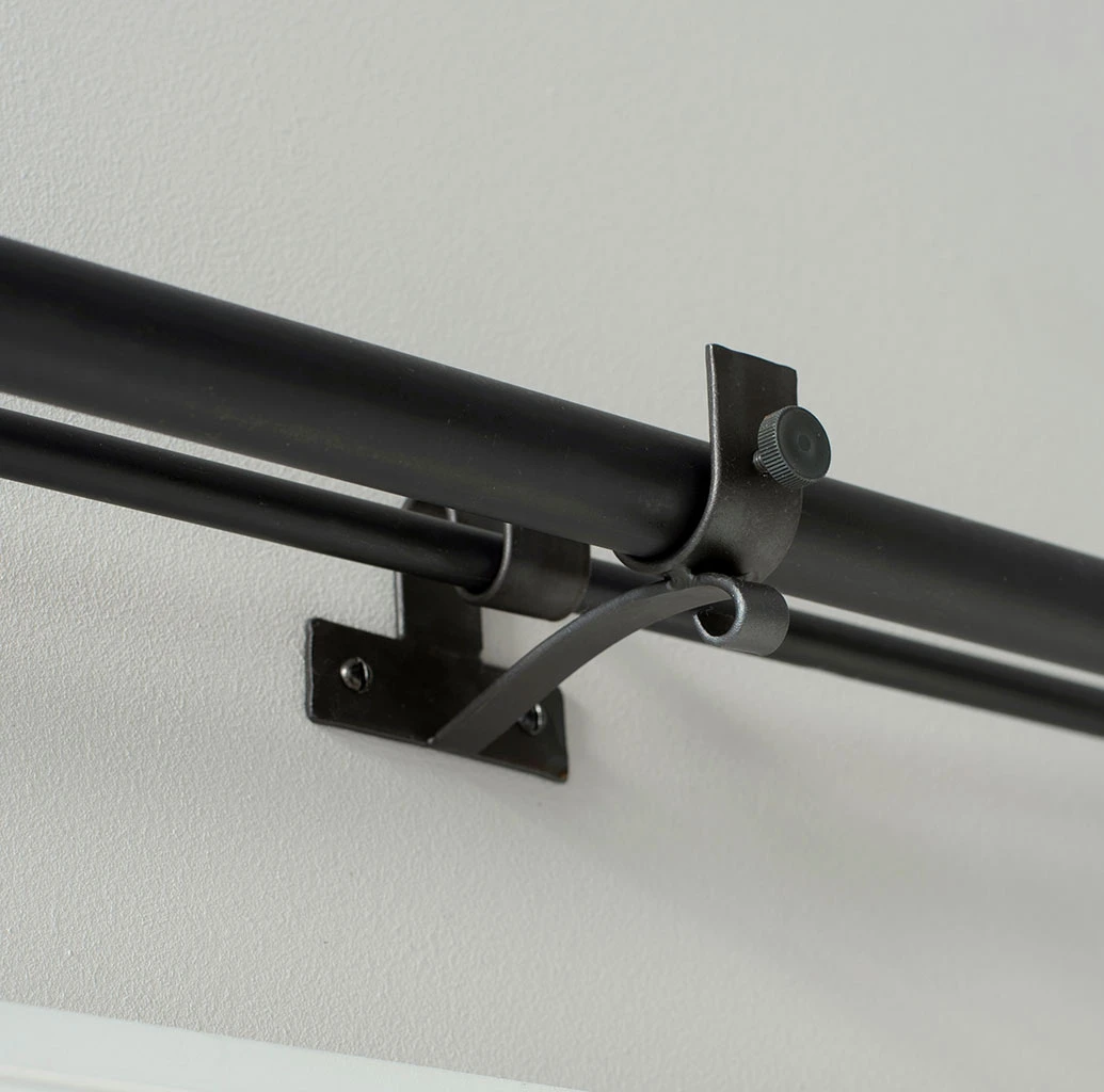 - Double brackets are generally used at either end of your pole. With a reach (depth) of 9cm to the front of the pole, they will fit most window settings.