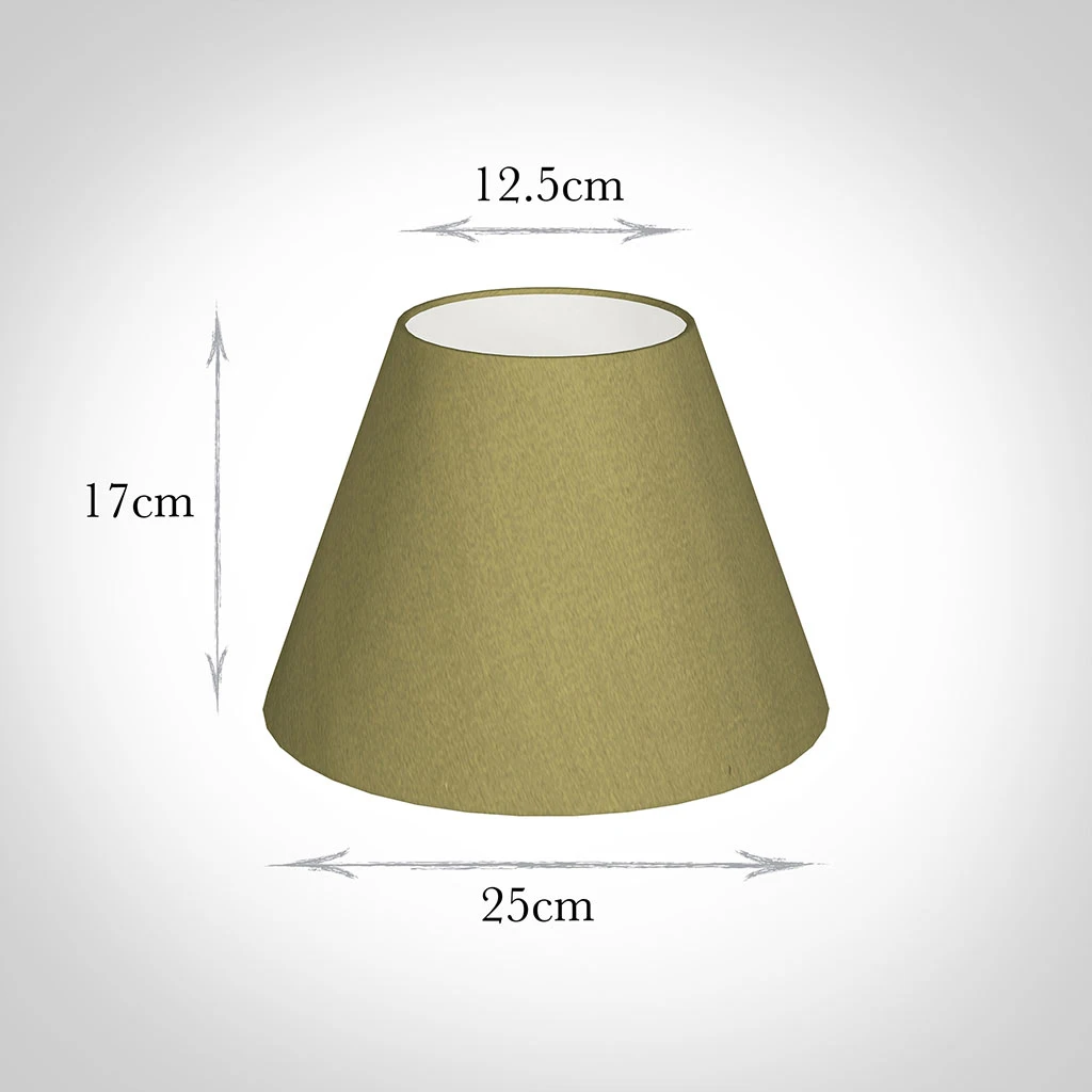 A classic empire shade, handmade in a subtle, antique gold silk dupion. We make this stylish shade to fit a lamp base. It is made by hand in our Suffolk workshop by one of our skilled shade makers in this beautiful fabric.