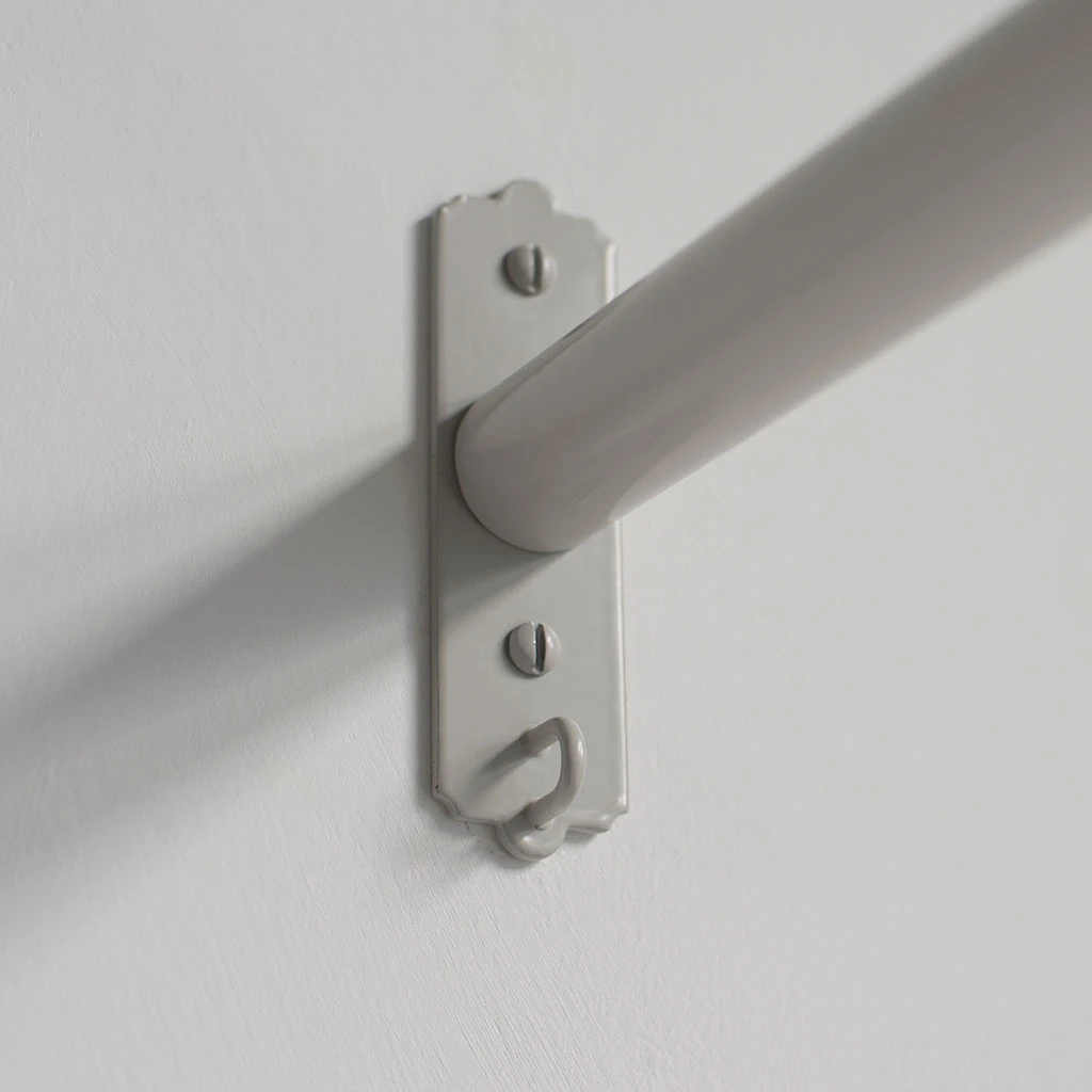 Our 25mm Brett Recess Brackets are the perfect companion for your forged iron curtain poles ensuring they will look fabulous for years to come in whichever room they are fitted. Finished in our off white/grey Clay paint for a lovely soft, country house look, these brackets are made from premium quality steel and are suitable for all curtains. We also make a wide range of complementary finials, rings and curtain holdbacks for you to choose from. The brackets have a decorative thumbscrew at the front to help secure your pole, and chamfered edges for an elegant finish.