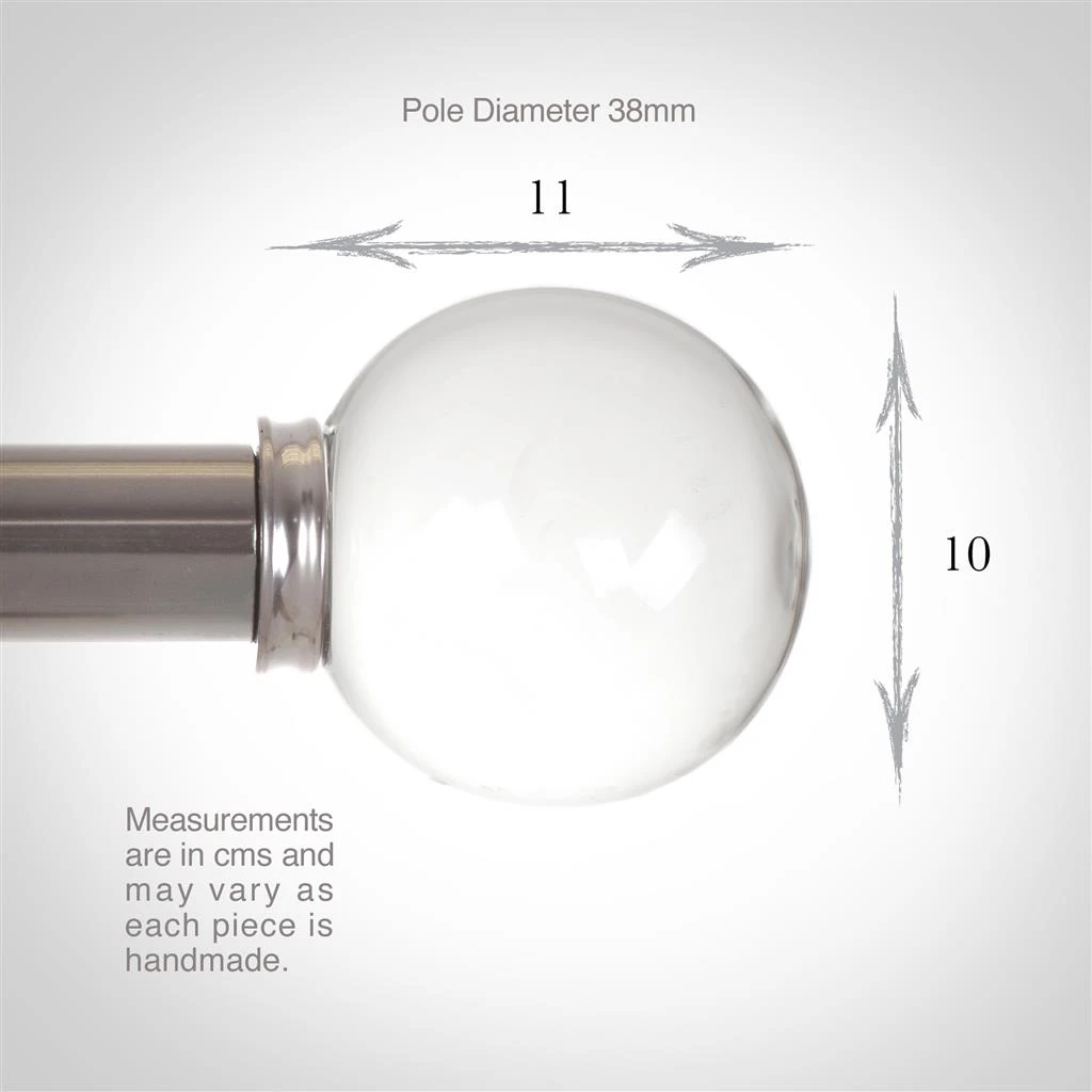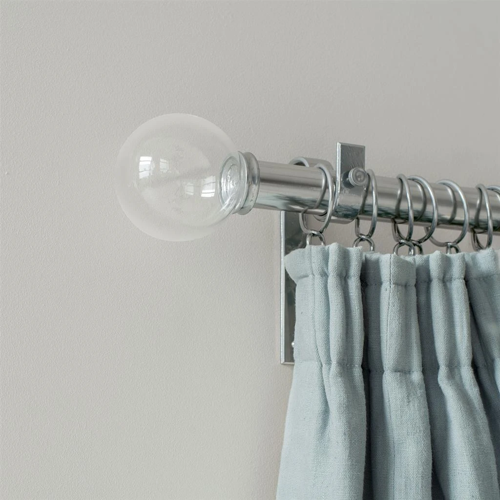 Browse our beautifully reflective clear glass ball finials – a perfect companion for our forged iron curtain poles. These hand blown glass balls have a classic appearance and weighty quality that will finish your window dressing perfectly and give you endless pleasure looking at them.