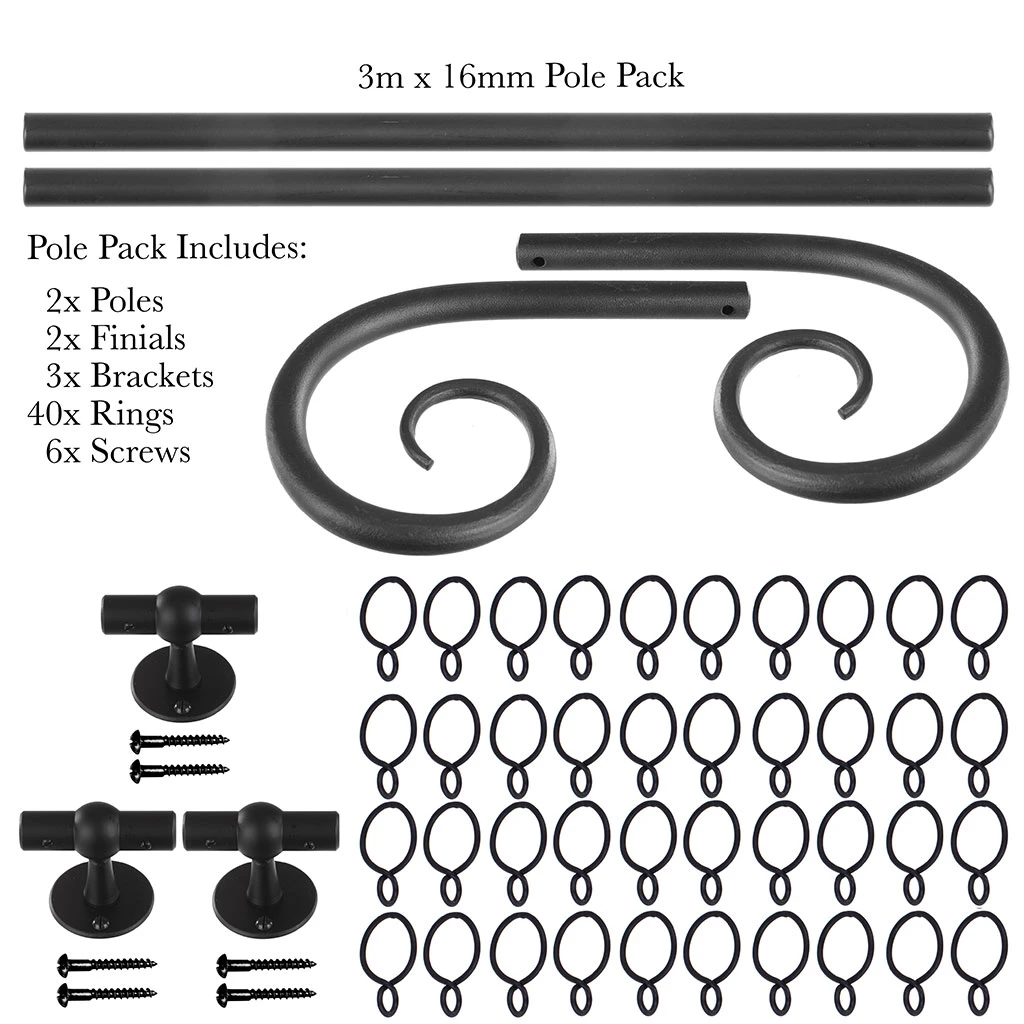 Each pack contains all you need to dress one window and comes complete with curtain pole, finials, rings and brackets:
