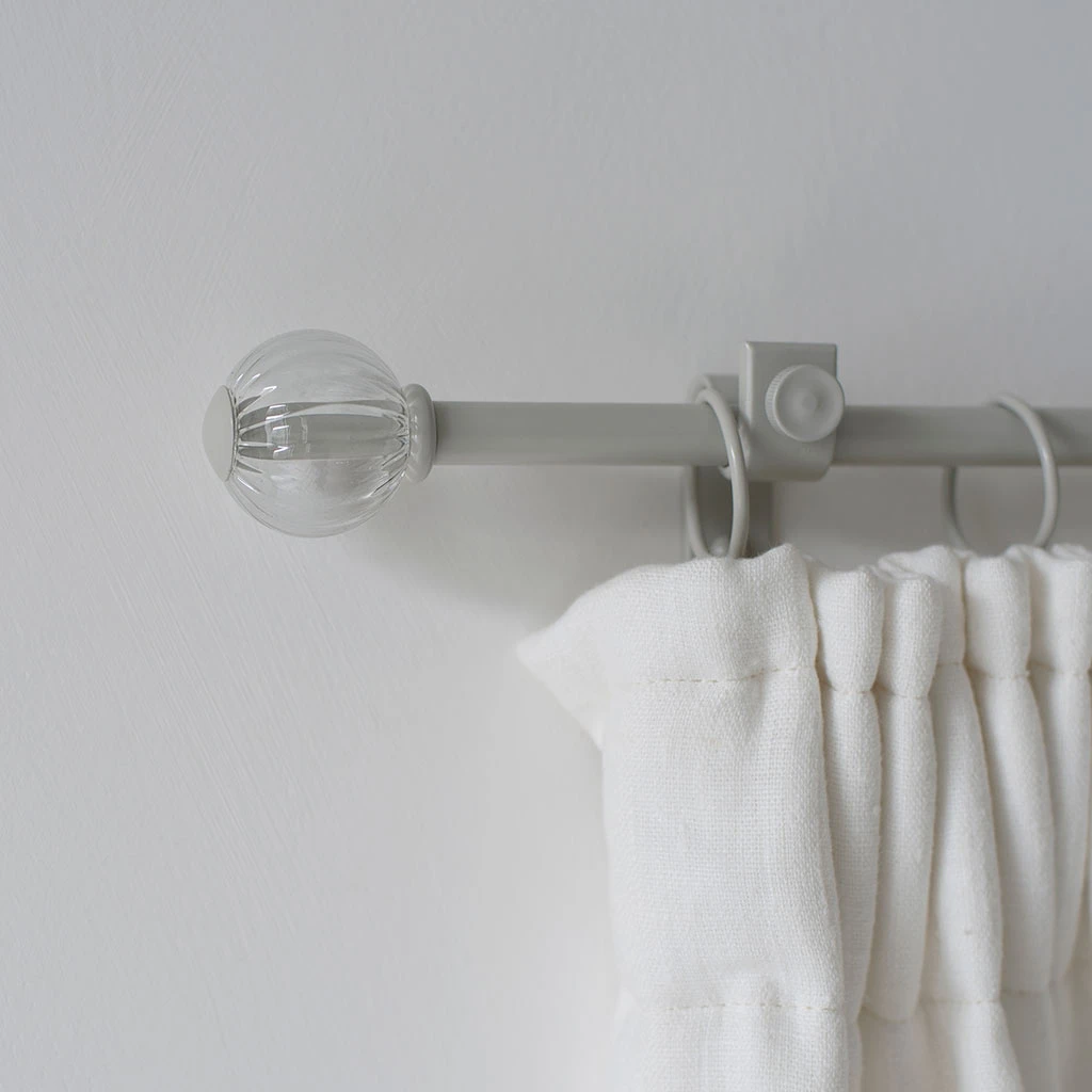 The finials form part of our stunning collection of curtain pole accessories including centre, sleeve, extended and recessed brackets, a variety of curtain rings and a wide range of lovely finials to personalise your look. Once fitted inside the pole, the finials are fixed in place with a tiny grub screw that is located at each end at the back of the pole.