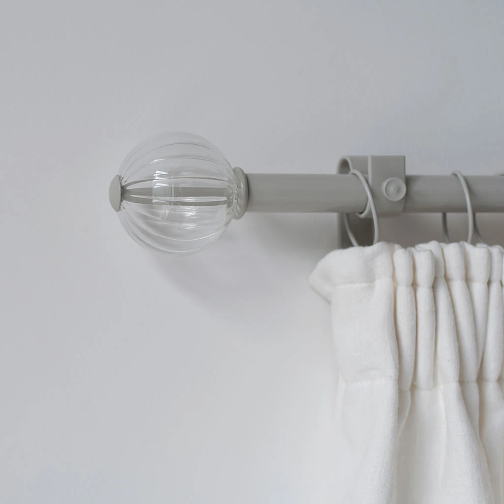 The finials form part of our stunning collection of curtain pole accessories including centre, sleeve, extended and recessed brackets, a variety of curtain rings and a wide range of lovely finials to personalise your look. Once fitted inside the pole, the finials are fixed in place with a tiny grub screw that is located at each end at the back of the pole.