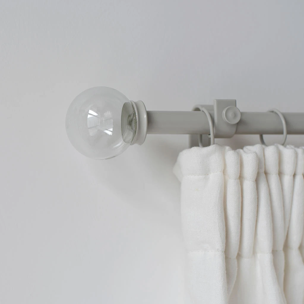 The finials form part of our stunning collection of curtain pole accessories including centre, sleeve, extended and recessed brackets, a variety of curtain rings and a wide range of lovely finials to personalise your look. Once fitted inside the pole, the finials are fixed in place with a tiny grub screw that is located at each end at the back of the pole.