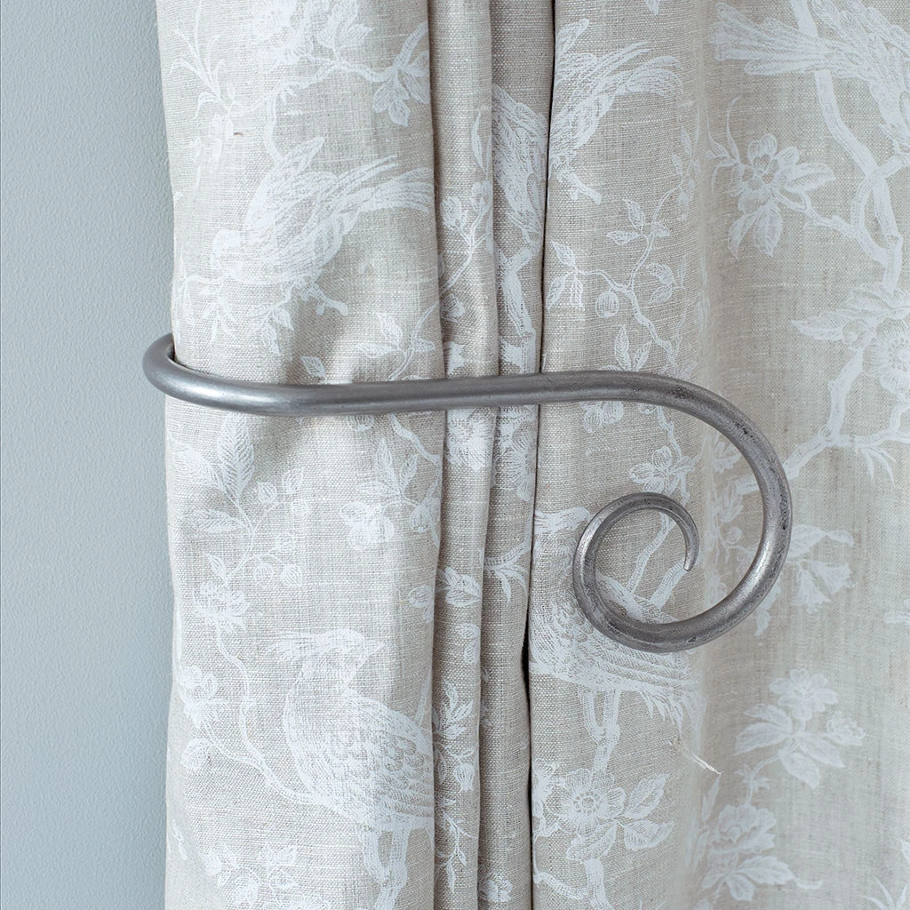 This elegant, hand forged holdback is available in a choice of finishes to match our curtain pole selection.