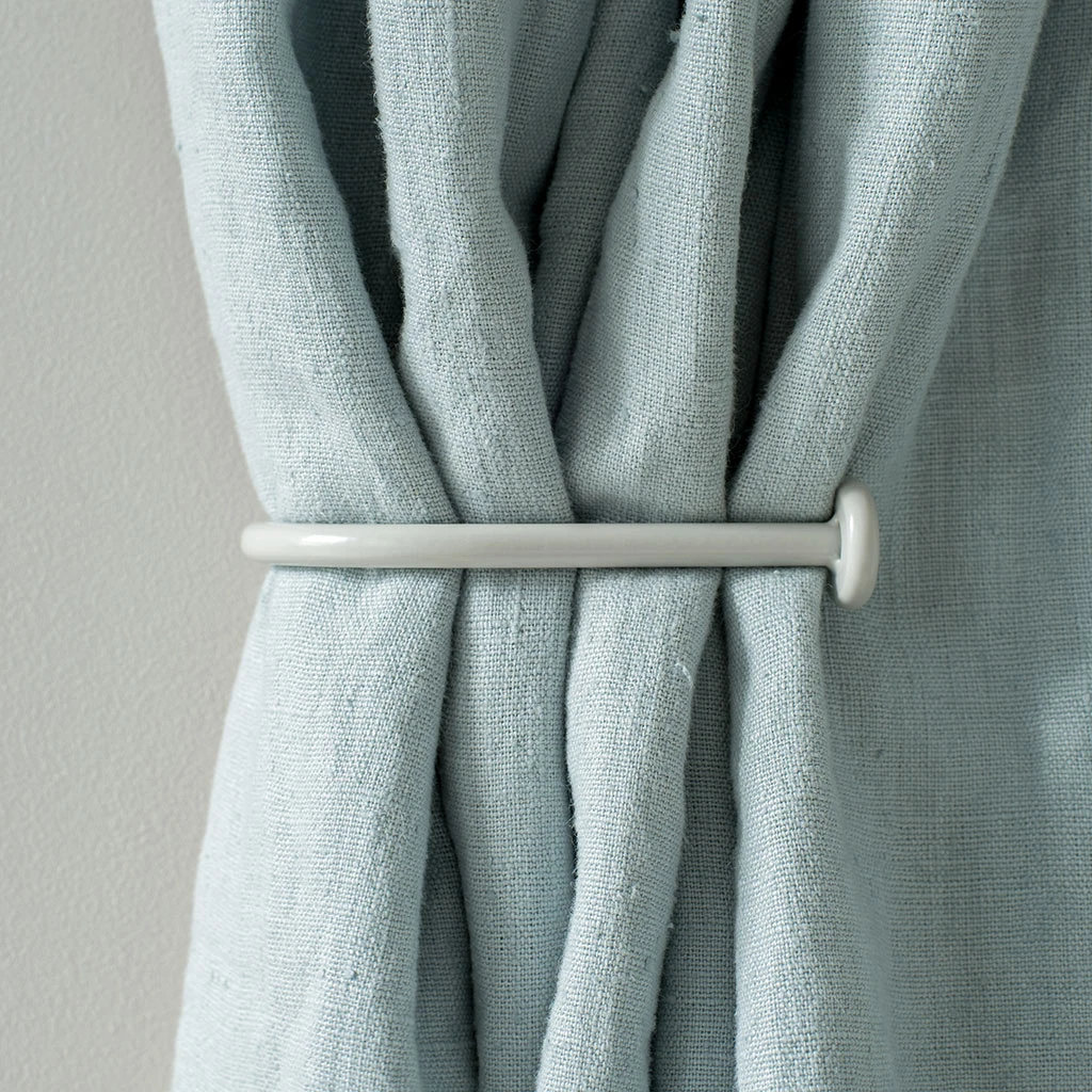 A hand forged, solid steel holdback to match our Button finial. The holdbacks are available in two sizes: this smaller holdback is generally recommended where there is only one width of fabric in the curtain (or more if it is a very light, unlined fabric).