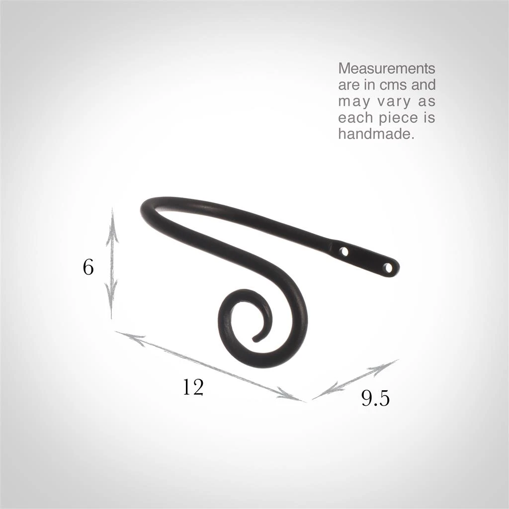 A hand forged, solid steel holdback to match our Crook finial. The holdbacks are available in two sizes: this smaller holdback is generally recommended where there is only one width of fabric in the curtain (or more if it is a very light, unlined fabric).