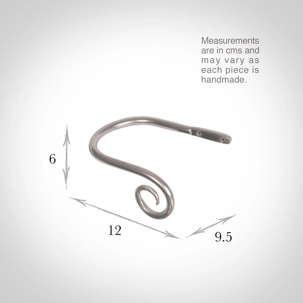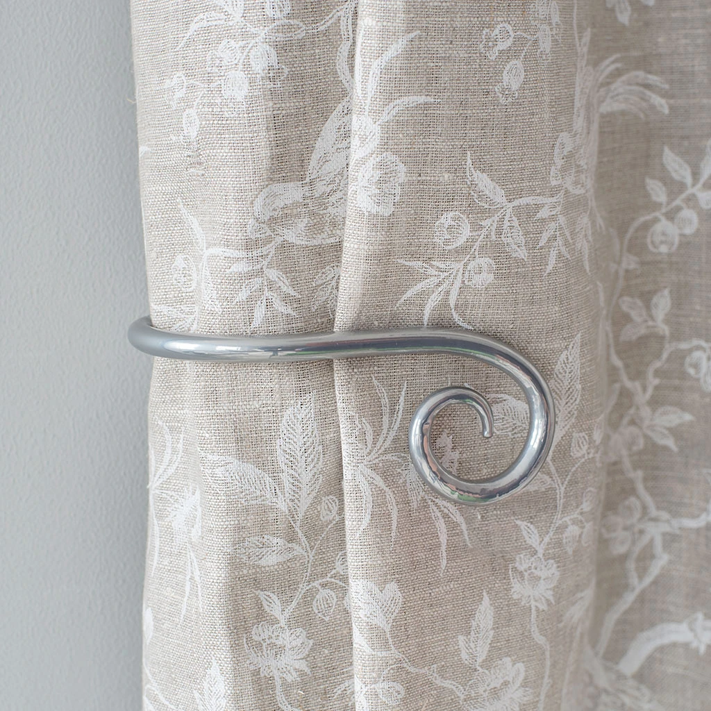 A hand forged, solid steel holdback to match our Crook finial. The holdbacks are available in two sizes: this smaller holdback is generally recommended where there is only one width of fabric in the curtain (or more if it is a very light, unlined fabric).