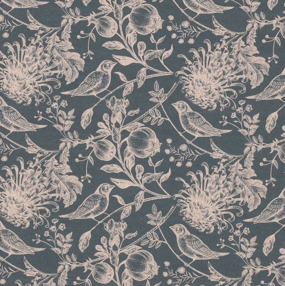 In celebration of our rural roots, we are excited to introduce our gorgeous woodland themed cotton mix fabric in a choice of colourways that weaves soft dusky hues with organic tones and textures. The fabric features a beautiful pattern of intertwining vines, honeysuckle, rose hips and birds etched onto an indigo background that perfectly encapsulates our agricultural heritage.